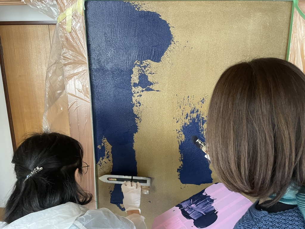予算内でコスパ良くリフォームする為 と お友達が挑戦してみたかったという理由で和室の傷んでいる一部の聚楽壁は自分たちでDIY左官塗りすることを選択。